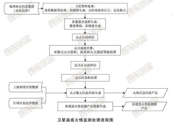 衛星火點(diǎn)監測的基本原理就是運用遙感衛星對地球表面進(jìn)行掃描,通過(guò)衛星地面站把掃描信息接收下來(lái),再利用計算機對這些信息進(jìn)行處理,識別出紅外熱點(diǎn),結合地理信息系統對熱點(diǎn)進(jìn)行定位,根據植被信息對熱點(diǎn)類(lèi)型進(jìn)行初步判讀,從而實(shí)現對森林火災的衛星監控。