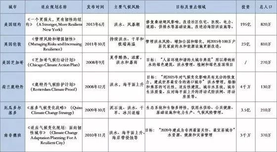 在全球變暖的大背景下,面對氣候變化的新形勢和新挑戰,城市需要以更有效、更靈活的方式應對快速變化中的不確定性和突變性。以增強城市韌性為目標的適應性規劃正在成為應對氣候變化和災害風(fēng)險的重要舉措和行動(dòng)指南。鄧艷(2013年)歸納了全球最具有代表性的6個(gè)城市適應規劃。