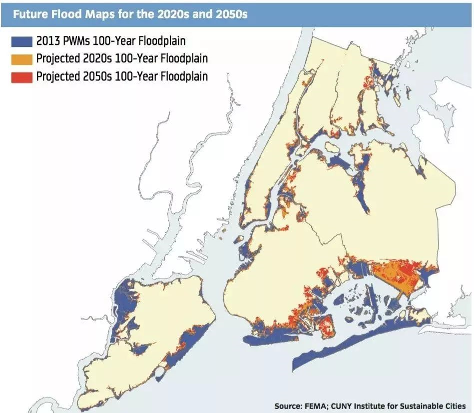 其中,以洪災為重點(diǎn),利用預期損失模型和成本效益分析法,對紐約2020年和2050年的氣候風(fēng)險進(jìn)行預測,明確可能的影響范圍及其潛在損失,并對不同規劃措施的損益情況進(jìn)行評估,為政府科學(xué)決策提供了有力的技術(shù)支撐。