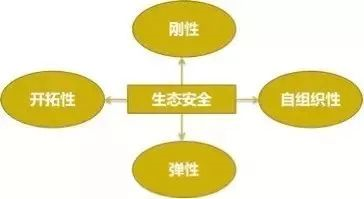 城市生態(tài)安全是一個(gè)城市可持續發(fā)展的支持基礎,其科學(xué)內涵:一是生態(tài)系統結構、功能和過(guò)程對外界干擾的穩定程度(剛性);二是生境受破壞后恢復平衡的能力(彈性);三是生態(tài)系統與外部環(huán)境協(xié)同進(jìn)化的能力(進(jìn)化性);四是生態(tài)系統內部的自調節自組織能力(自組織性)[9],見(jiàn)圖3所示。