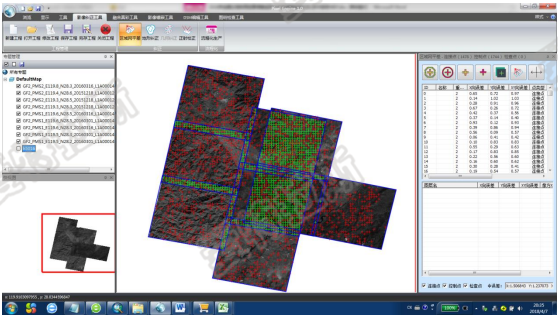 6.鑲嵌勻色:解決接邊、勻色、鑲嵌線(xiàn)編輯、“替云”等。實(shí)時(shí)羽化、支持超大圖像數據、提供自動(dòng)勻色與人工調色(PS功能)、區域變形糾正;可同時(shí)提供多種分辨率的數據鑲嵌;