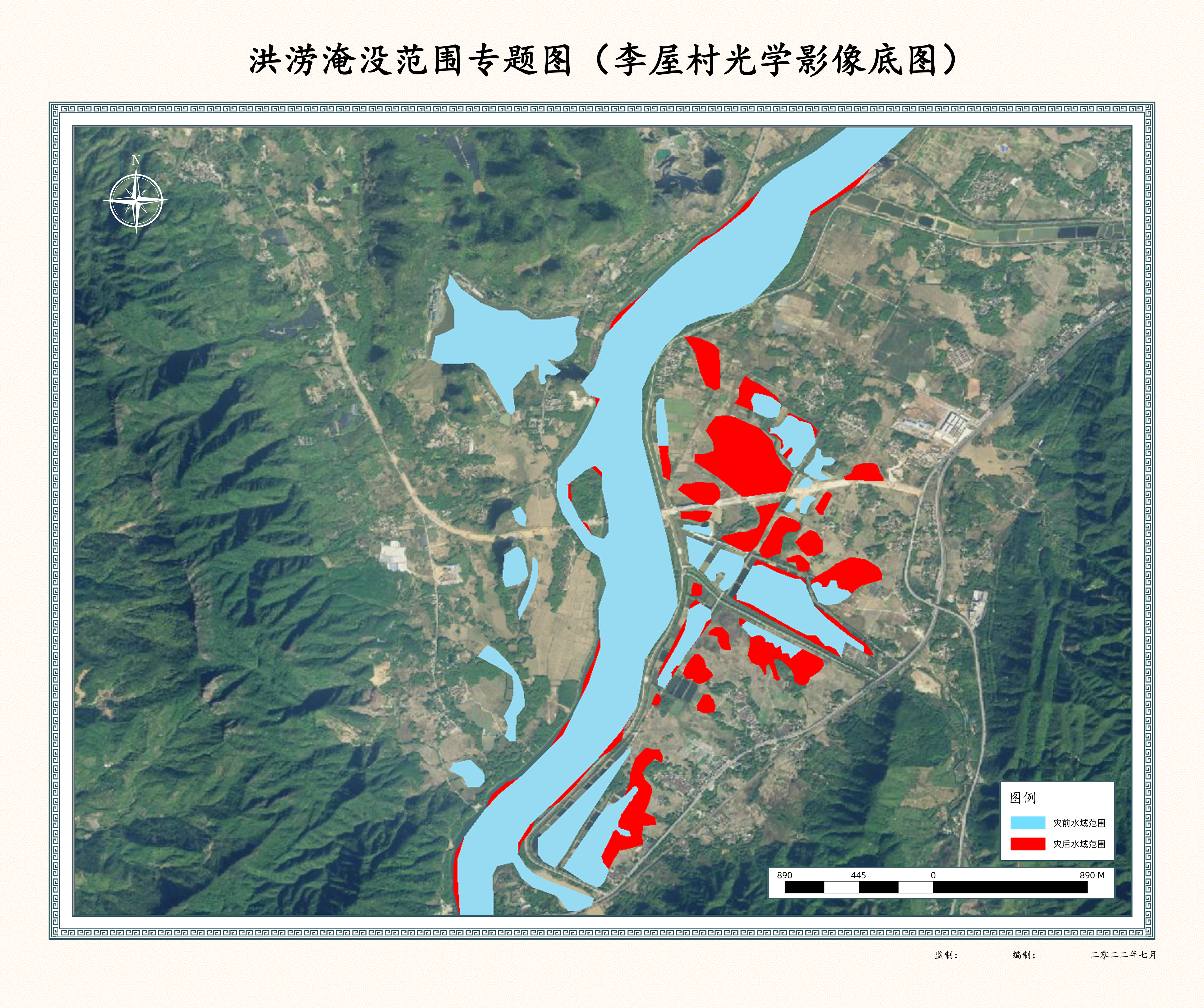 李屋村洪澇淹沒(méi)范圍專(zhuān)題圖(光學(xué)影像底圖)