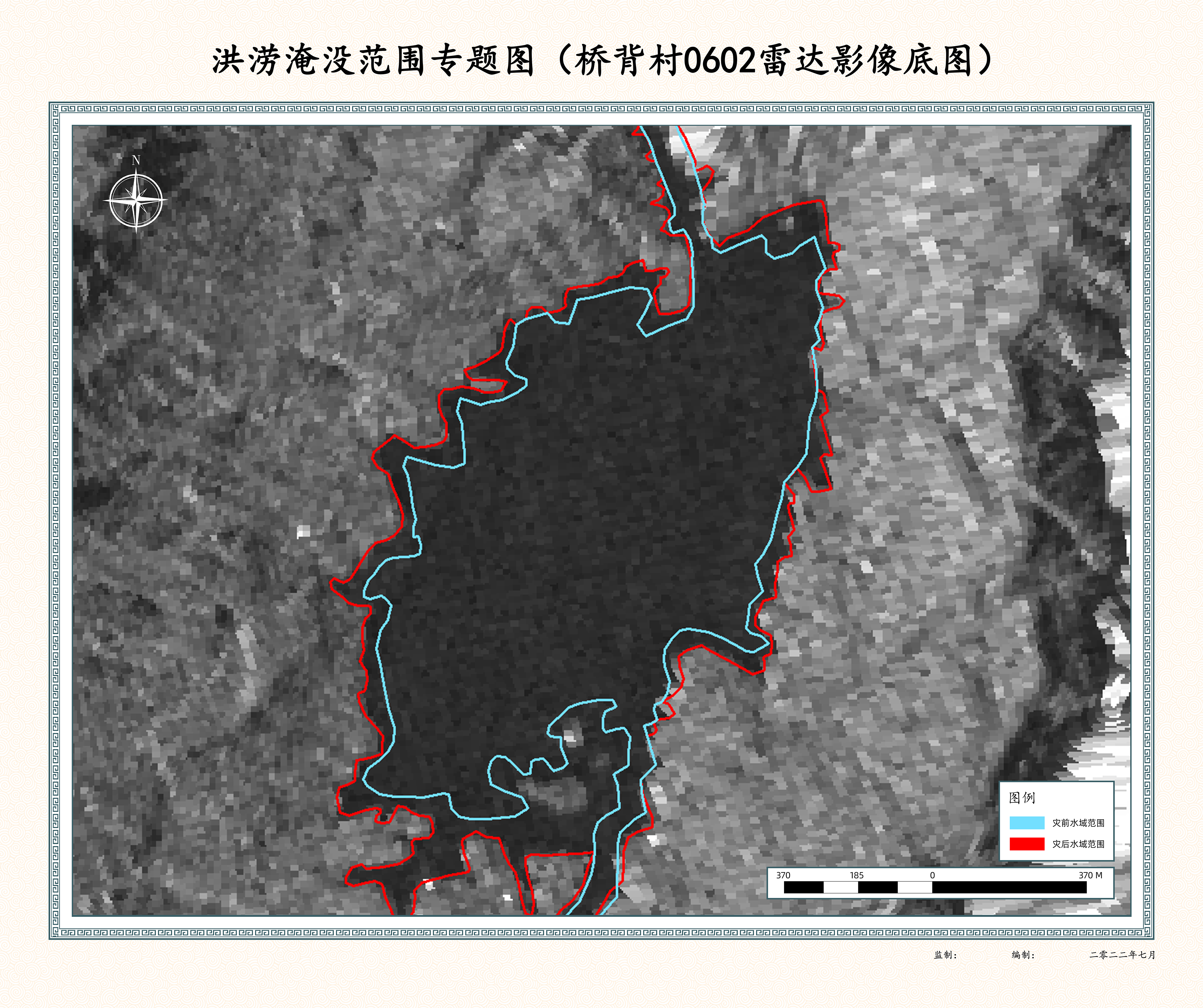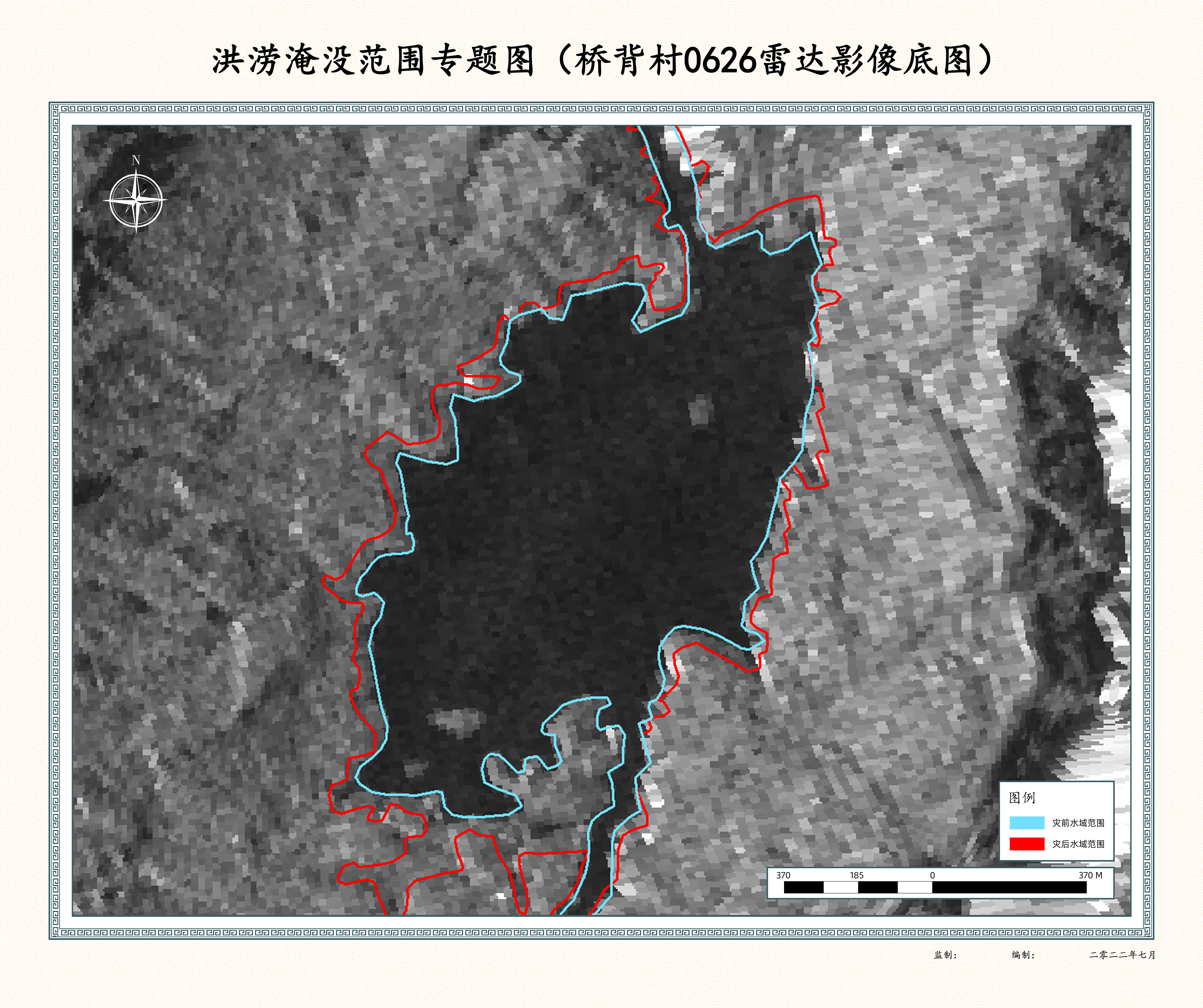 橋背村6月26日淹沒(méi)范圍專(zhuān)題圖(雷達影像底圖)
