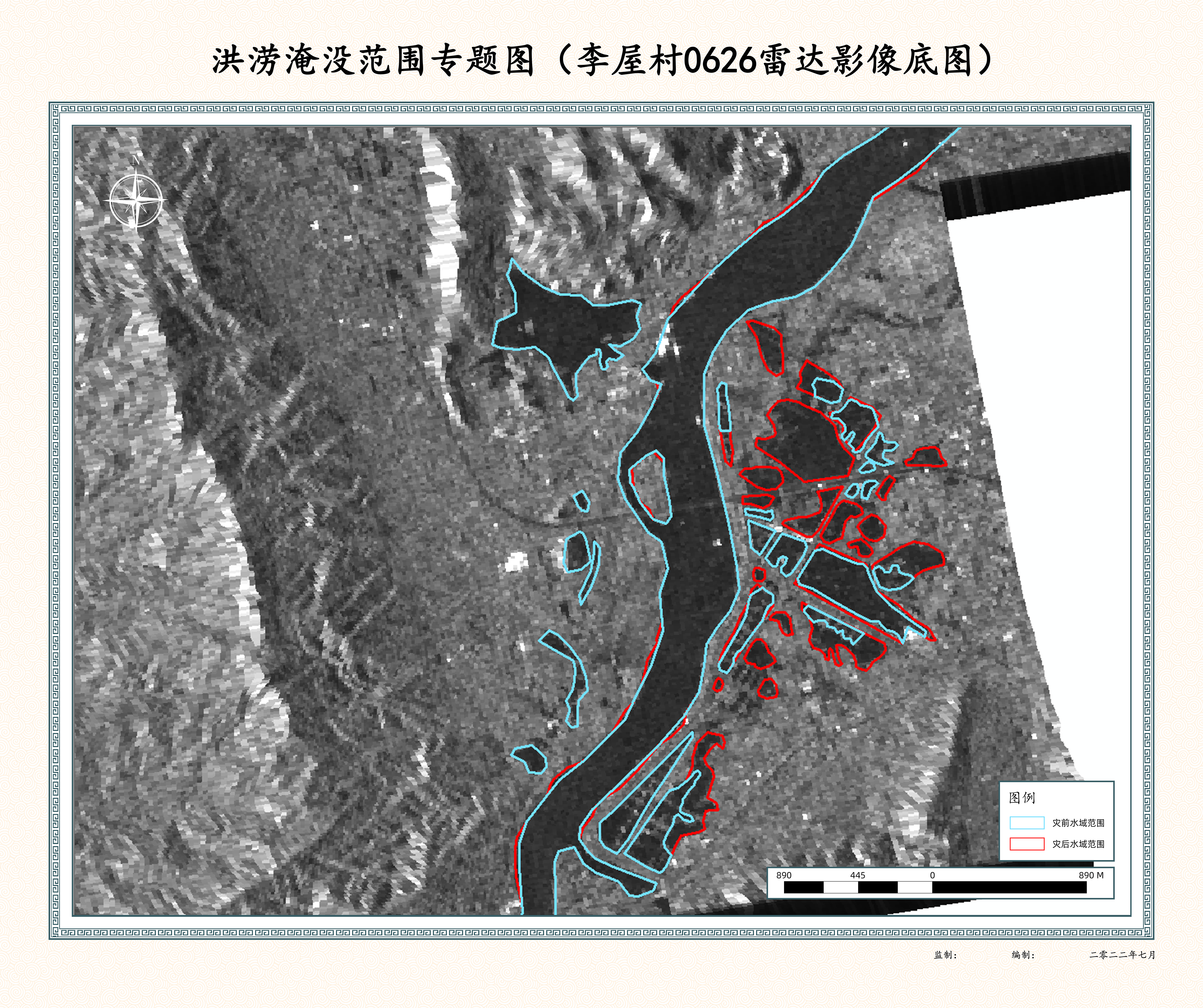 李屋村6月26日淹沒(méi)范圍專(zhuān)題圖(雷達影像底圖)
