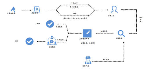 依據“查-測-溯-治-管” 的思路。利用日常排查、排污口視頻、在線(xiàn)監測數據發(fā)現排污口存在問(wèn)題;將監測預警的預警信息推送到系統中,進(jìn)行核查確定,并下達定向巡查任務(wù)。工作人員進(jìn)行現場(chǎng)問(wèn)題核實(shí)、水質(zhì)采樣、照片取證。利用在線(xiàn)監測數據、現場(chǎng)的采樣數據,通過(guò)模型分析,實(shí)現污染源溯源。依據溯源結果,利用掛圖作戰“一張圖” 對相關(guān)入河排污口和污染源采取專(zhuān)項整治行動(dòng),并對專(zhuān)項整治的過(guò)程和結果進(jìn)行監管。同時(shí)對入河排污口進(jìn)行“一口一檔”日常管理,同時(shí)通過(guò)數據綜合分析為排污口精細化管理提供支撐。